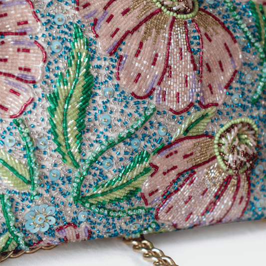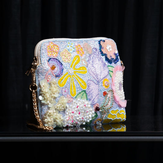 Floral Beaded Fringe Sling Bag