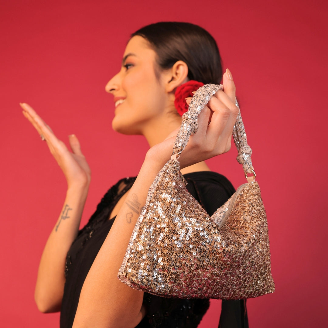 Radiating subtle glamour, the Aura Ombre Evening Bag is designed with contrasting front and back hues that flow seamlessly into an ombré story. Adorned with fine sequins and finished with a structured silhouette, this bag is made to elevate evening ensembles with effortless sophistication.